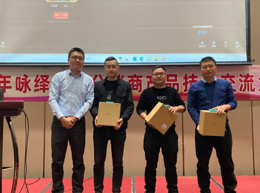 正式會議結(jié)束后,詠繹為與會人員安排了豐盛的晚宴,并于期間穿插了抽獎環(huán)節(jié),這些獎品充分展示了詠繹科技對合作伙伴和客戶的誠意與關(guān)懷。這一環(huán)節(jié)無疑讓現(xiàn)場氛圍更加活躍,讓參會者充分感受到了這次交流會的喜悅與輕松。